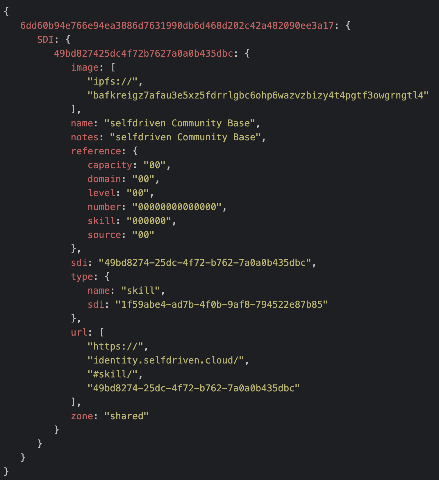 Metadata labels are zero index Base-26 representation of the token code, e.g. S,D,I = 18,3,08